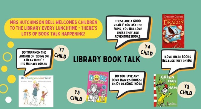We provide our children a wide range of opportunities for them to enjoy reading, chat informally about books that they enjoy and make recommendations to others. Teaching staff and support staff undertake ongoing professional development which ensures they are knowledgeable about contemporary children's literature. This allows them to engage with children in book talk and with personal book recommendations.